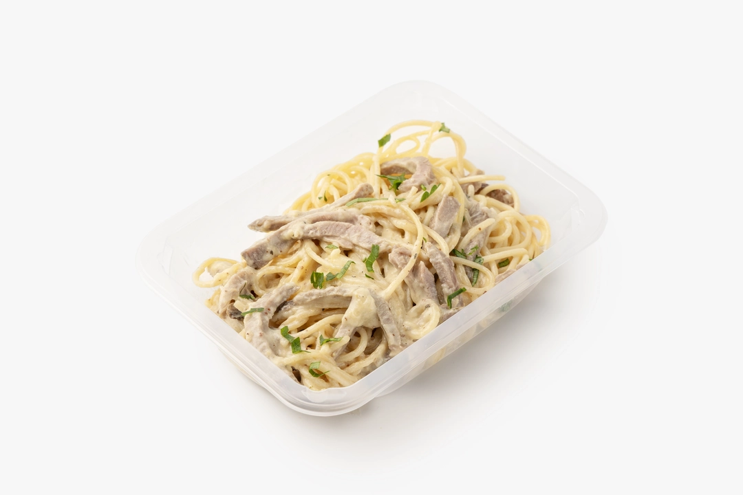 Паста в сливочно-горчичном соусе с томлёной су-вид говядиной