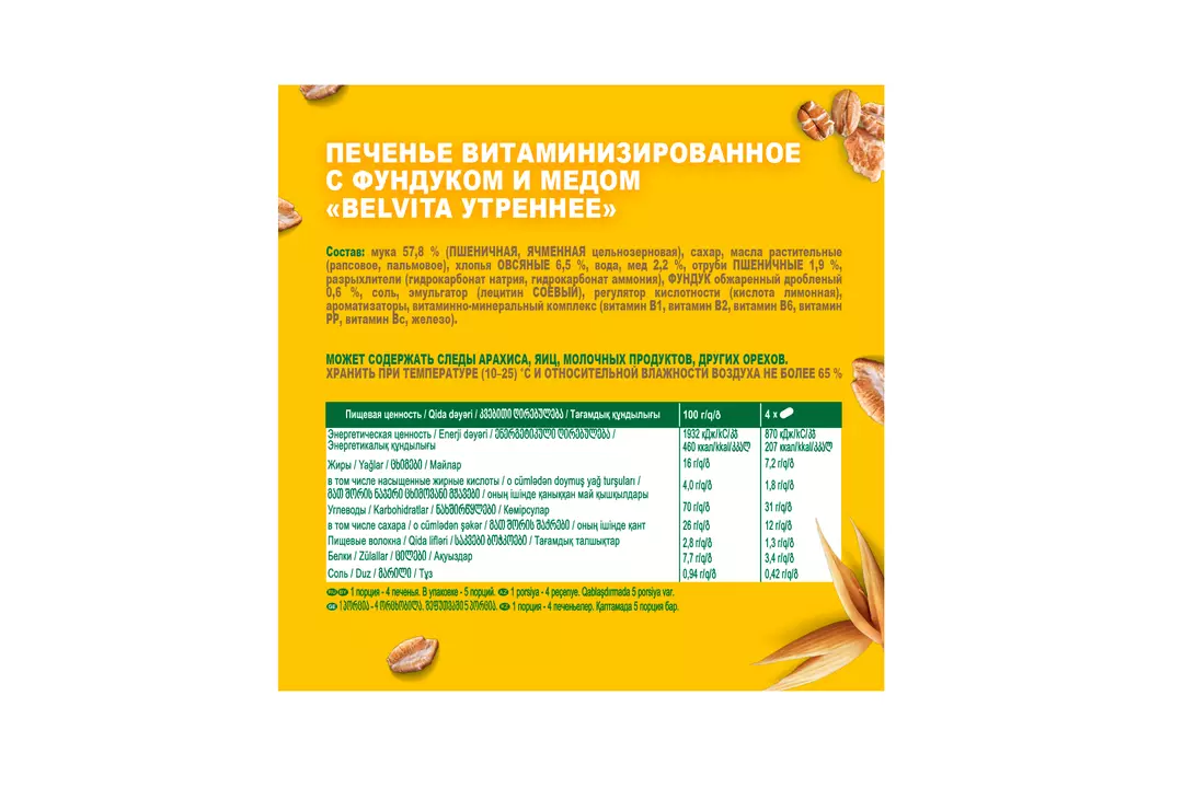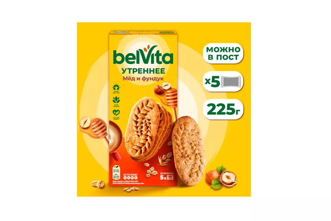 Печенье BelVita Утреннее витаминизированное с фундуком и медом 225 г / Супермаркет