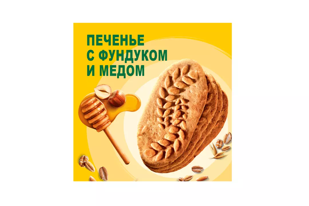 Хрустящее печенье с орехами и ароматным медом, которое станет идеальным решением для завтрака, перекуса и прекрасно подойдет в пост. Печенье с добавлением цельных злаков и витаминно-минерального комплекса. Печенье с фундуком можно есть с творогом, йогуртом, кашами или просто дополнять любимым напитком. Печенье в индивидуальной упаковке удобно брать с собой на работу, прогулку, пикник и в поездку. Страна производитель-Россия
