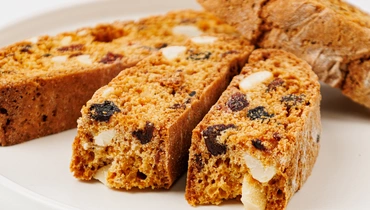 Хрустящее печенье с мягким масляным ароматом и лёгкой медовой сладостью. В тесто добавлено ассорти из вяленой клюквы, изюма и арахиса — для баланса кисло-сладких и ореховых нот. Ломтики печенья плотные и ломкие. Хорошо сочетаются с кофе или чаем, подходят для быстрого перекуса.