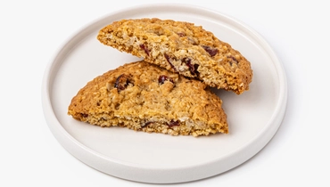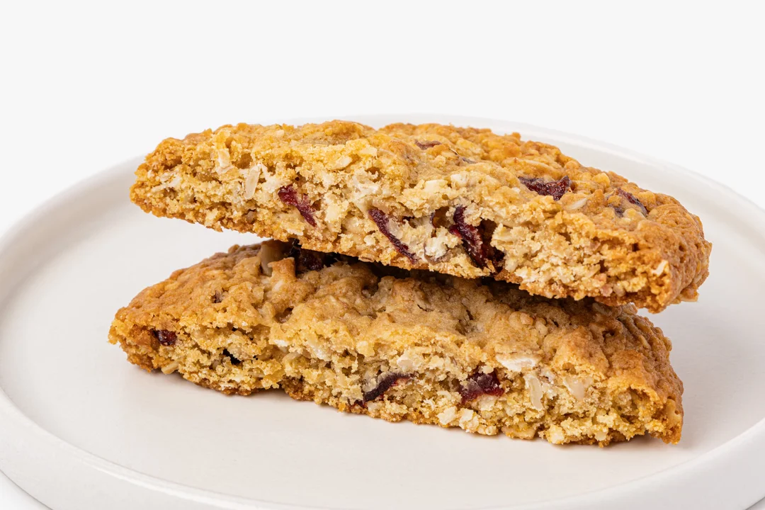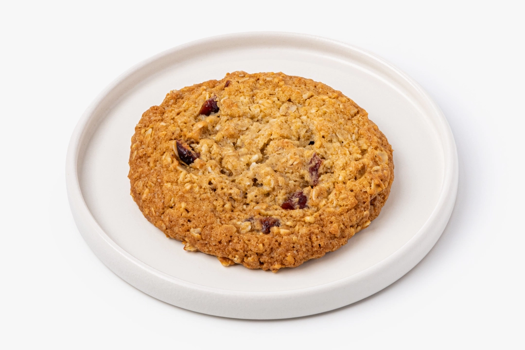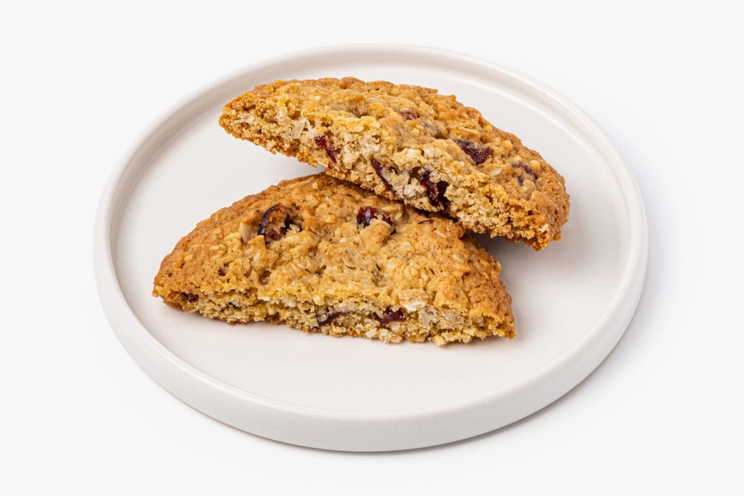 Плотное сдобное печенье на сливочном масле с кусочками клюквы и стружкой кокоса. Овсяные хлопья делают текстуру более выразительной, а коричневый сахар придаёт выпечке мягкий карамельный оттенок. Клюква добавляет приятную кислинку, которая освежает сладкое тесто. Печенье удобно взять с собой к чаю или кофе — оно сохраняет форму и не крошится