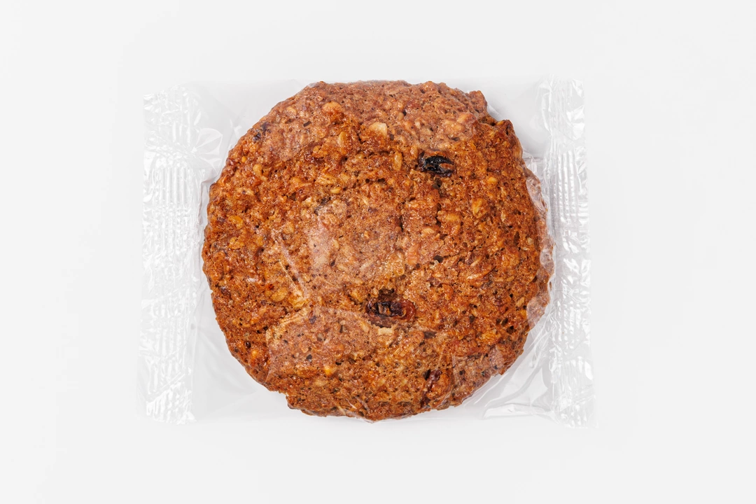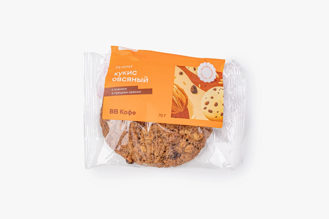 Нежное хрустящее печенье с овсяными хлопьями. В нём сочетаются терпкость грецкого ореха, карамельные ноты тростникового сахара, пряность молотой корицы и сладость и сочность изюма. Не содержит молочных продуктов и яиц. Товар доступен с доставкой и в магазинах с зоной кафе.