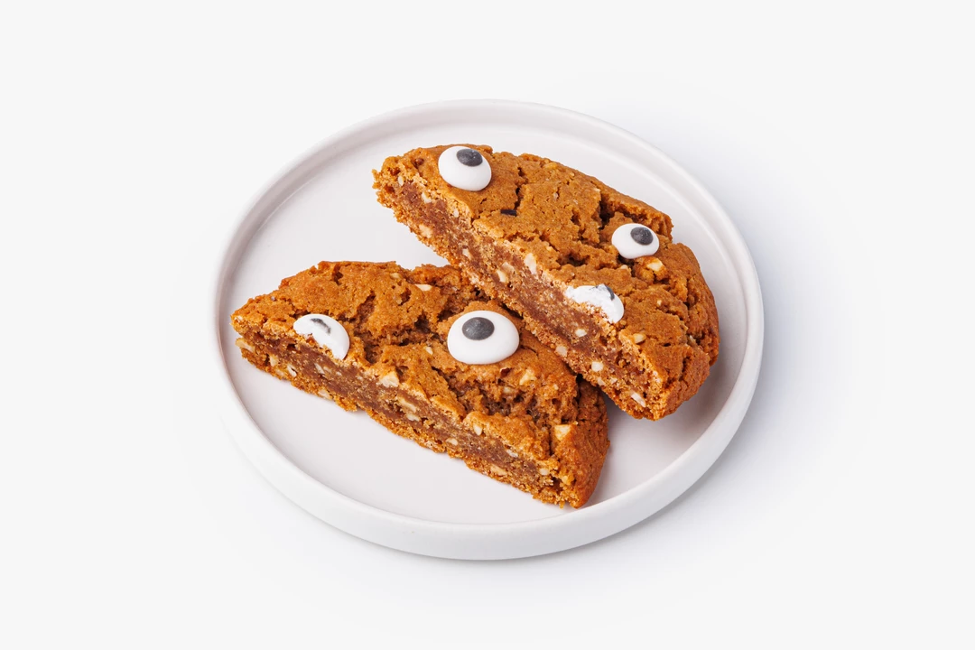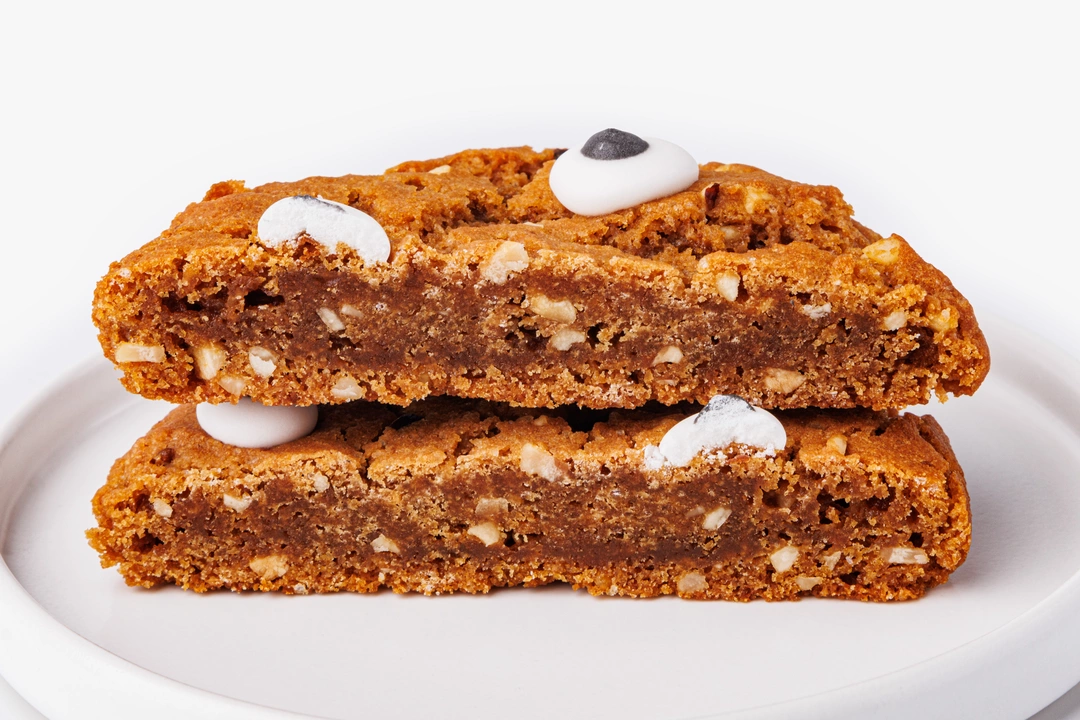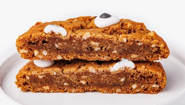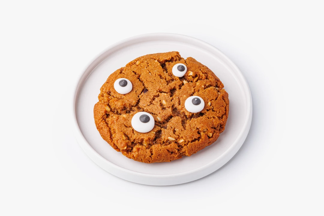 Хрустящее плотное печенье, дополненное карамелью, с хулиганским настроением — за его «взглядом» не спрятаться. Украшено сахарными «глазками» — забавная деталь, которая делает лакомство особенно запоминающимся. Карамель здесь замешана в само тесто, а дроблёный фундук добавляет ореховую теплоту. Получается забавный перекус, который поднимает настроение ещё до первого укуса. Подойдёт для чаепития с друзьями или в качестве задорного сюрприза для того, кто любит оригинальные сладости.