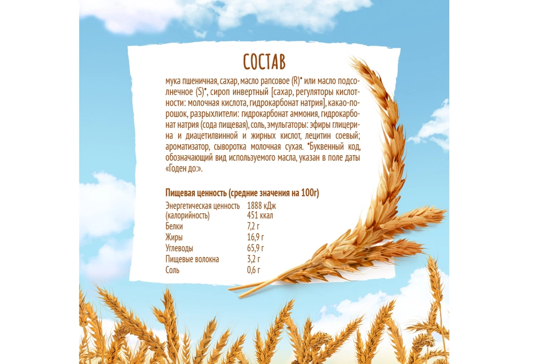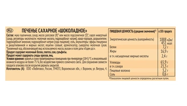 Аппетитное печенье цвета какао как нельзя лучше подходит для самых душевных моментов. Откройте для себя идеальный баланс воздушного печенья и насыщенного шоколадного вкуса. Это замечательное угощение для всей семьи украсит собой и завтрак, и вечернее чаепитие. Страна производитель-Россия