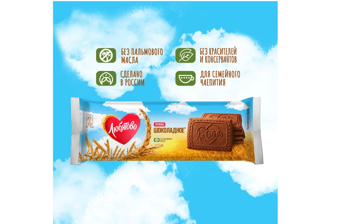 Печенье Любятово Шоколадное сахарное 228 г / Супермаркет
