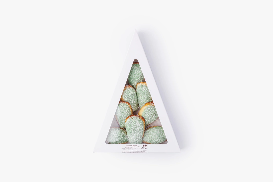 Набор классического французского печенья в форме маленьких ракушек в треугольной коробочке, напоминающей ёлочку. Нежное тесто с цветочным мёдом получается мягким и сладким. Сверху лакомство покрыто шоколадом с натуральными красителями и посыпано кокосовой стружкой, что делает его похожим на праздничные украшения. Угощение станет замечательным подарком себе и близким, ведь его можно подать на новогодний стол, взять с собой на зимнюю прогулку или устроить тёплый семейный вечер с чашечкой ароматного чая.