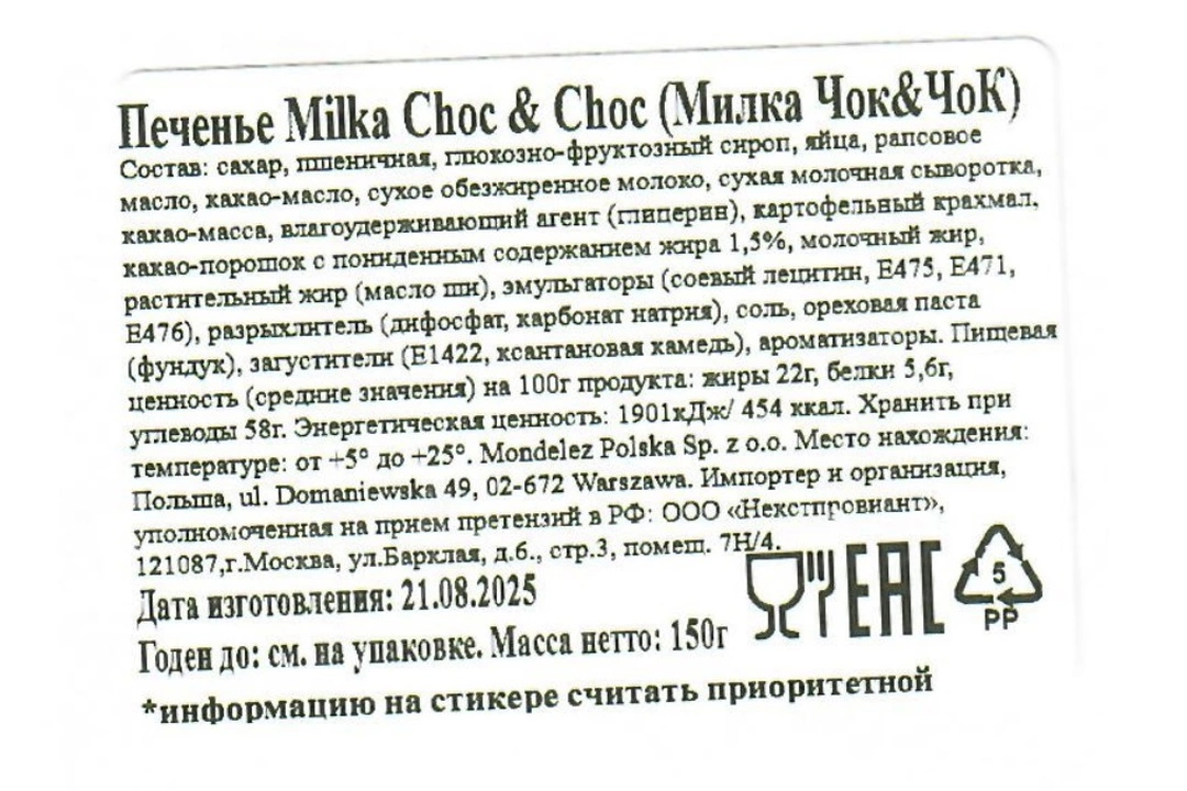 Milka Choc & Choc – многослойные пирожные, обладающие нежным вкусом. Пирожные-сандвичи состоят из великолепной бисквитной основы и толстого слоя мягкого ароматного орехового крема, сверху облиты фирменным альпийским молочным шоколадом Milka. В ореховой пасте множество маленьких хрустящих шоколадных кусочков. Плотное пористое тесто пропитано ванильным сиропом. Страна-производитель Польша