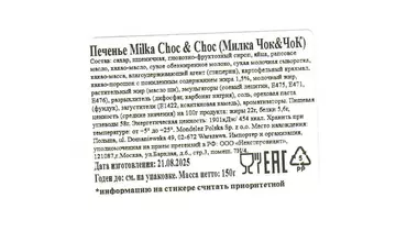 Печенье Milka Choc & Choc бисквитное 150 г / Супермаркет