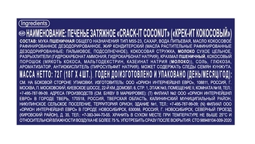 Кокосовое печенье может быть разным, но что-то похожее на наш тропический крекер вы точно ещё не пробовали! Нежная сливочная основа в сочетании с натуральным кокосовым маслом и кокосовой стружкой станет настоящей находкой для тех, кто любит вкусные оригинальные лакомства. Это идеальный вариант для завтрака или небольшого перекуса на учебе в течение дня! Страна производитель-Россия