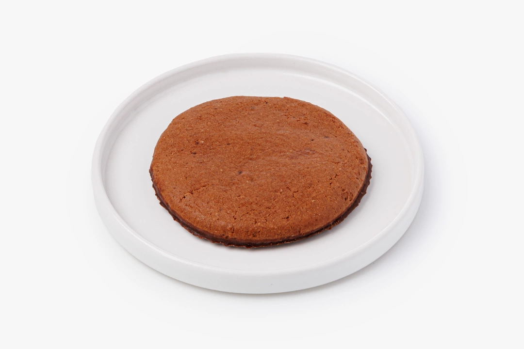 Печенье с сывороточными и молочными протеинами, напоминающее классический брауни. Тёмный шоколад на мальтите делает его вкус глубоким, без лишней сладости. Ананасовые цукаты добавляют неожиданные фруктовые акценты. Овсяная мука и отруби придают печенью плотную структуру с лёгкой зернистостью. Продукт подходит для перекуса после физической активности, его можно взять с собой на прогулку или в спортзал.