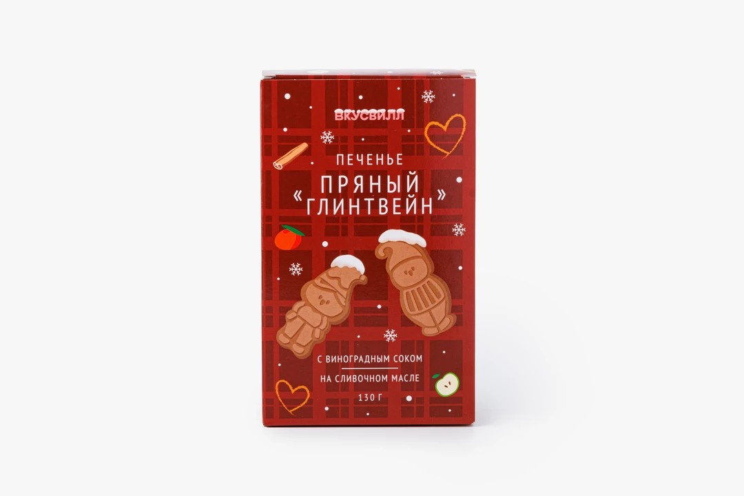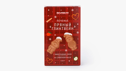 Ароматное фигурное печенье с зимними пряностями и виноградным соком. Смесь специй создаёт тёплый пряный букет, напоминающий вкус классического глинтвейна. Концентрированный виноградный сок придаёт лакомству мягкую фруктовую сладость с лёгкой терпкостью, а цедра лимона добавляет освежающий цитрусовый оттенок. Печенье можно подать к кофе или взять на прогулку в качестве перекуса. Оно одинаково украсит и новогодний стол, и вечернее чаепитие в кругу семьи.