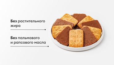 Рассыпчатое и ароматное печенье из пшеничной муки высшего сорта, покрытое тонким слоем молочного шоколада из цельного и обезжиренного сухого молока, с добавлением тёртого какао