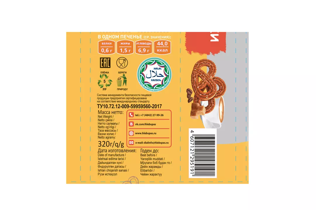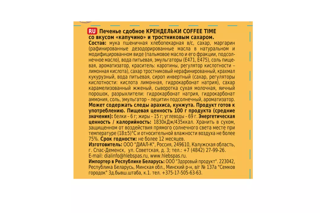 Хрустящее рассыпчатое печенье в затейливой форме кренделя, со вкусом капучино и с тростниковым сахаром, покрыто сладкой глазурью и декорировано крупной сахарной крошкой. Прекрасно подходит для кофе-тайм и чаепития. Халяльный продукт. Страна-производитель Россия
