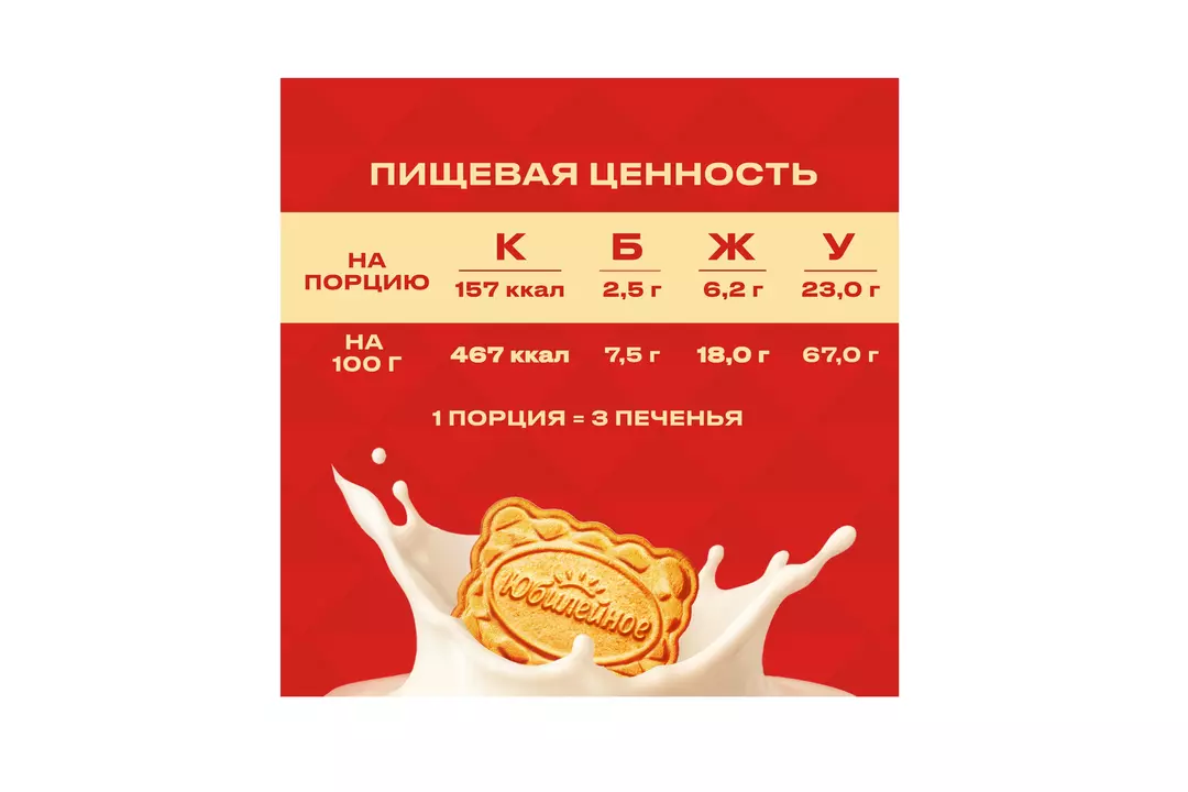 Печенье Юбилейное традиционное витаминизированное молочное, 112 г — это тот самый вкус, который знаком с детства. В мире, где так много разделяет, есть то, что нас объединяет, ведь все мы из одного теста. Печенье молочное сочетает в себе нежное тесто, хрустящую текстуру, а также комплекс витаминов. Классическое молочное печенье. Нежная текстура и сбалансированный вкус. Без консервантов и красителей, только из тщательно отобранных ингредиентов. Подходит к чаю, кофе, молоку или как самостоятельный перекус. Упаковка 112 г — удобно взять с собой на учебу, на работу или в дорогу. Юбилейное витаминизированное — это вкус, проверенный временем, и польза витаминов, актуальная каждый день. Наслаждайтесь любимым печеньем с легким молочным вкусом — вкусно и просто. Вкусное печенье сочетается со сливочным маслом, вареньем, медом. Найдите свой идеальный дуэт или ешьте просто так — неповторимый вкус прекрасно раскрывается без добавок! «Юбилейное» – это повод поделиться теплом с близкими и почувствовать, что у нас гораздо больше общего, чем кажется.