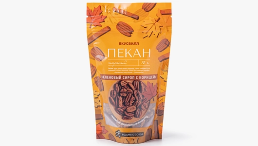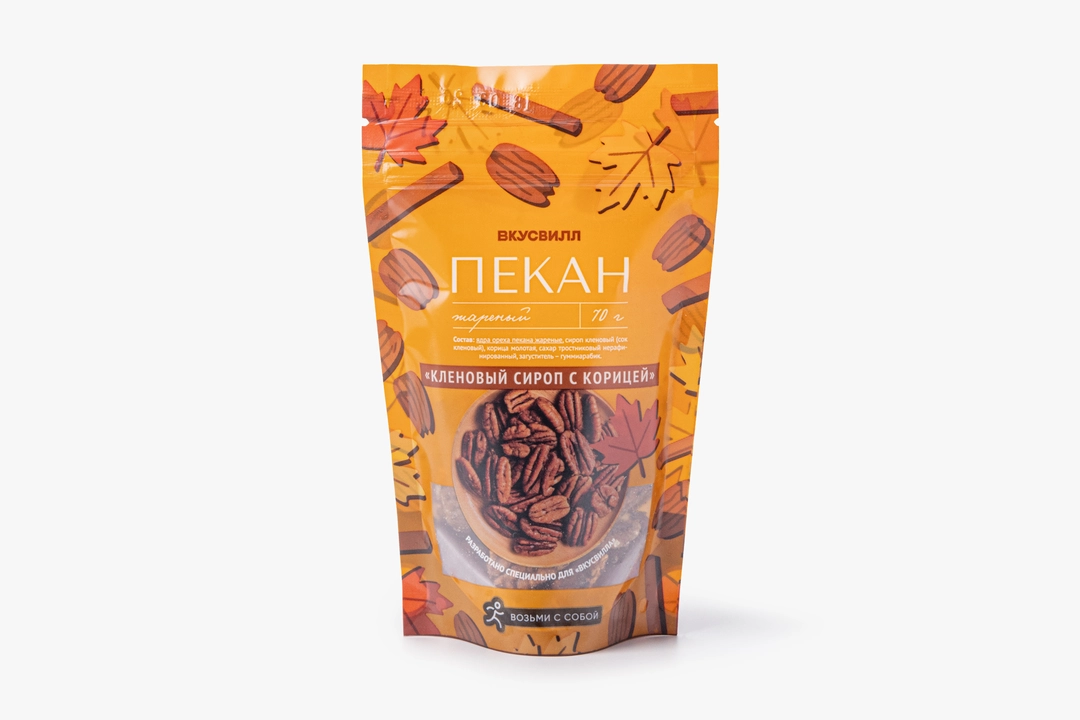 Жареные ядра пекана в пряной оболочке с кленовым сиропом и корицей приготовлены по уникальному рецепту, разработанному специально для ВкусВилла. В составе продукта используются только натуральные ингредиенты без искусственных добавок. Кленовый сок придаёт сладковатым орешкам карамельный оттенок, а корица добавляет тёплый аромат. Упаковку удобно брать с собой в дорогу, на пикник или использовать для перекуса в офисе