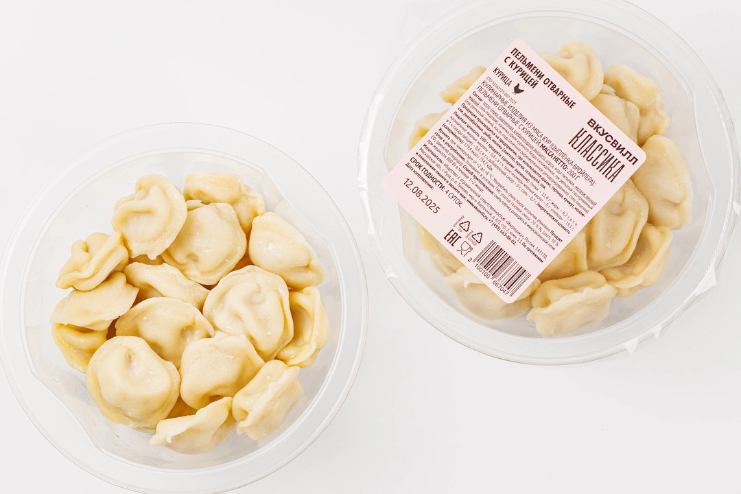 Эти пельмени приготовлены по домашнему рецепту. В начинке, помимо нежного куриного филе, только пассерованный лучок и щепотка соли. Поэтому они подойдут и для детского рациона. Разогреть пельмешки можно в микроволновой печи прямо в упаковке — только сделайте несколько проколов в плёнке. Со сметаной будет ещё вкуснее!