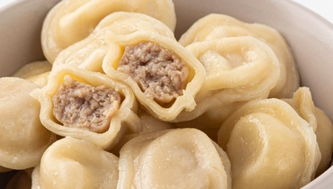 Пельмени с нежным, но упругим тестом. В начинке — фарш из говядины, приправленный молоком для особенной сочности. Можно потушить в сковороде с лучком, томатами и сметаной. Или просто отварить в кастрюле и подать со сливочным маслом. Продукт соответствует стандартам Халяль.