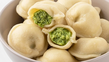 Пельмени с индейкой, моцареллой и шпинатом