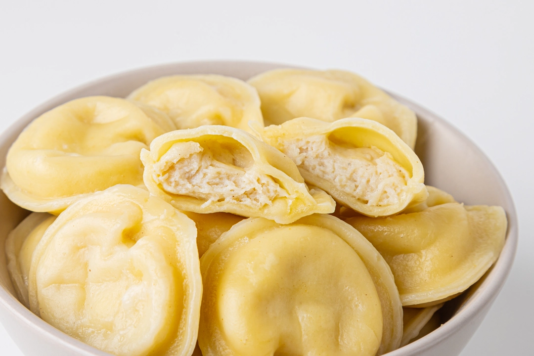 Необычные пельмени с нежной рыбной начинкой. Судак сам по себе сочный и мягкий, а специи добавляют ему лёгкую пряность. Отварите пельмени и подавайте их с топлёным маслом, сметаной или сливочным соусом. Подойдут и более свежие варианты, например, с йогуртовой заправкой и зеленью или с овощным салатом. Пельмени понравятся тем, кто ценит рыбные вкусы и ищет разнообразие среди привычных блюд.
