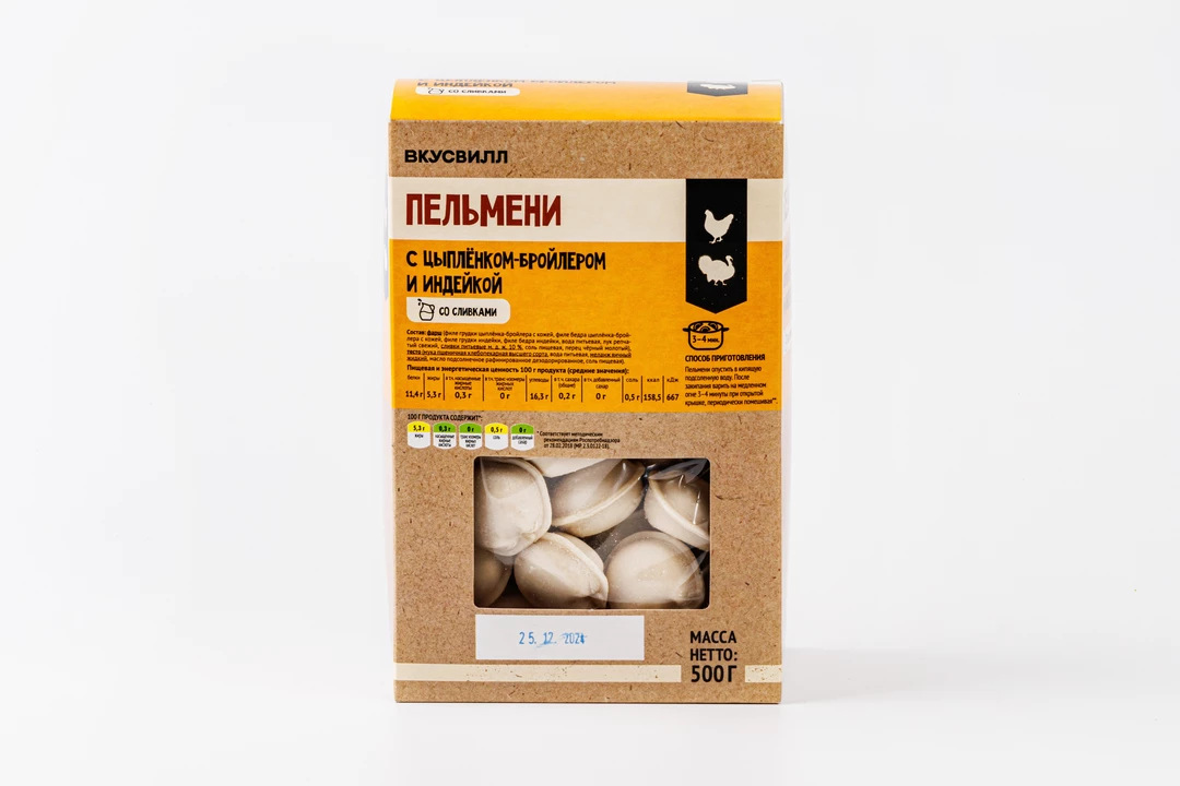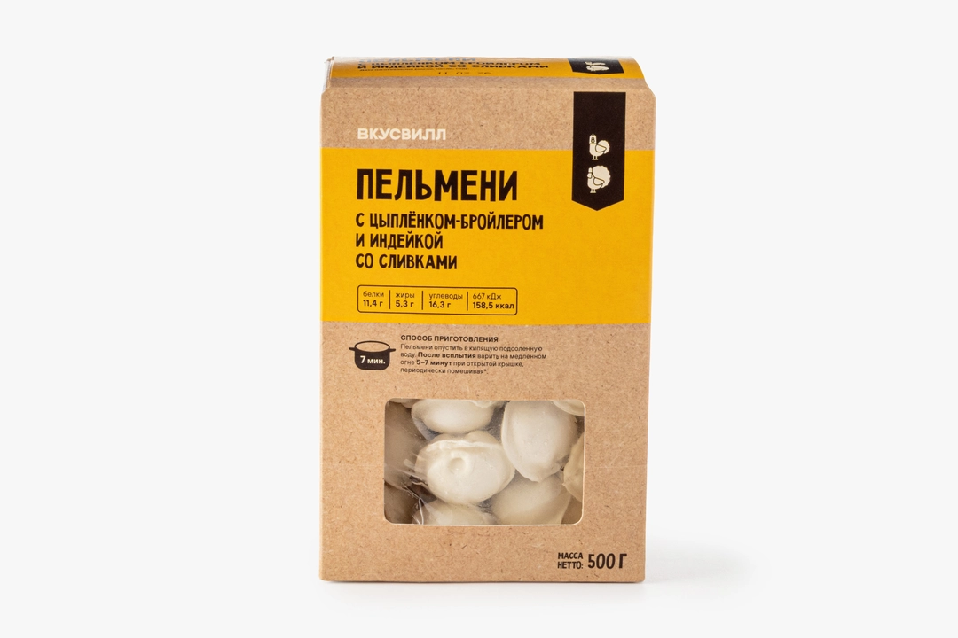 Пельмени с цыпленком-бройлером и индейкой со сливками