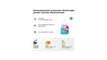 Устройте пенную вечеринку для вашего малыша вместе с пеной для ванн от WONDER LAB. Мягкая пена с ароматом нежного абрикоса станет настоящим удовольствием, будет вызывать только приятные ассоциации и поможет сформировать полезную привычку. Средство для купания не сушит и не раздражает нежную детскую кожу, не вызывает шелушение. Полностью смывается водой и не оставляет на коже липкой пленки. Полностью безопасный состав: без SLS, парабенов, спиртов и красителей. В основе детского средства - инновационный компонент Biomicrogel, который сделан из овощей и фруктов. Благодаря этому компоненту, средства WONDER LAB безопасны для человека, не вредят окружающей среде, не содержат токсичных компонентов и разлагаются на 98% за 1 день. Страна производитель-Россия