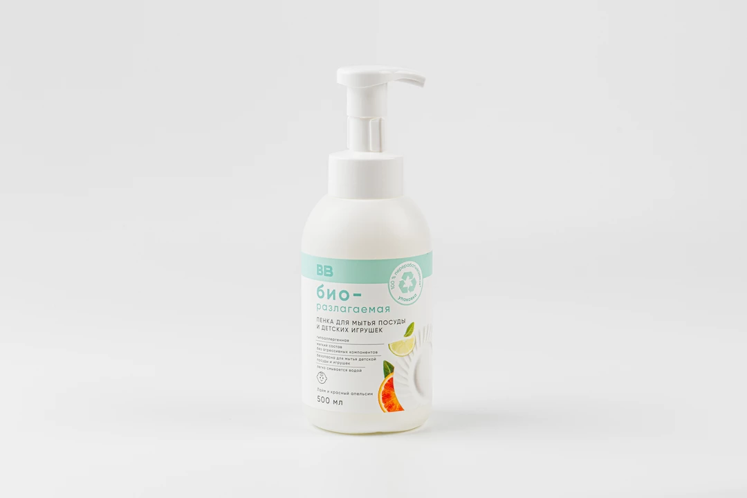 Мягкая пена бережно очищает посуду и детские игрушки, легко смывается водой и не оставляет запаха. В её составе нет агрессивных компонентов — средство гипоаллергенно и подходит для мытья детской посуды. Экстракты лайма и красного апельсина добавляют лёгкий свежий аромат, глицерин защищает кожу рук от сухости, а биоразлагаемая формула безопасна для окружающей среды.