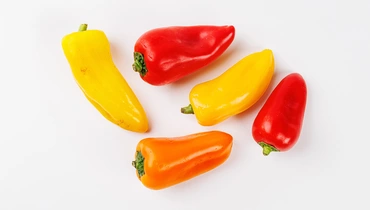 Ассорти разноцветных мини-перчиков — сладких, сочных и аппетитно хрустящих. Их размер не превышает 10 см, шкурка тонкая, семенная камера очень маленькая. Отлично подойдут для салатов, пиццы, фаршировки сыром и запекания в цельном виде.