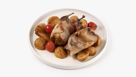 С нашим набором вы легко приготовите изысканное блюдо в лучших традициях европейской кухни. Мы уже выпотрошили тушки перепелов, обернули их тонкими ломтиками бекона и запекли, а картофель обжарили с чесноком и розмарином. Для особенной пикантности добавили вяленые томаты, лук-шалот и брусничный соус. Вам остаётся лишь поставить лоток в духовку или микроволновую печь на несколько минут, чтобы мясо зарумянилось и стало ароматным, а картофель покрылся аппетитной корочкой. Блюдо создаст атмосферу уютного вечера в дорогом ресторане и подойдёт для праздничного застолья или торжественного ужина.