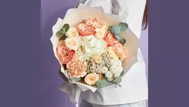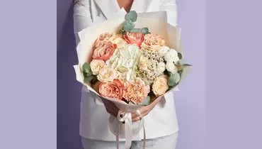 Нежный букет в персиковых тонах порадует вашего близкого человека, любимую девушку, маму или подругу ароматом розы и сочетанием цветов. Не забудьте подрезать цветы перед тем как ставить в вазу (после подрезки в течении 2-3 секунд поставьте в воду). Не храните букет на прямых солнечных лучах и возле отопительных приборов, чтобы сохранить цветы свежими как можно дольше . К каждому нашему букету мы приложим открытку с вашими пожеланиями. Состав: Гортензия-1 шт Озотамнус-1 шт Кустовая роза-3 шт Диантус-3 шт Сантини-1 шт Пионовидная роза -3 шт Эвкалипт пучок-1 шт