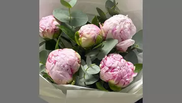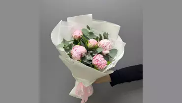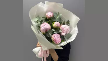 Нежный весенний букет с пионами, которые находятся еще в процессе роспуска в сочетании с душистым эвкалиптом - беспроигрышный вариант букета, чтобы порадовать любимую девушку в день рождения. Не забудьте подрезать цветы перед тем как ставить в вазу (после подрезки в течении 2-3 секунд поставьте в воду). Не храните букет на прямых солнечных лучах и возле отопительных приборов, чтобы сохранить цветы свежими как можно дольше. К каждому нашему букету мы приложим открытку с вашими пожеланиями. Состав: Пион Сара Бернар -5 шт Эвкалипт-3 шт