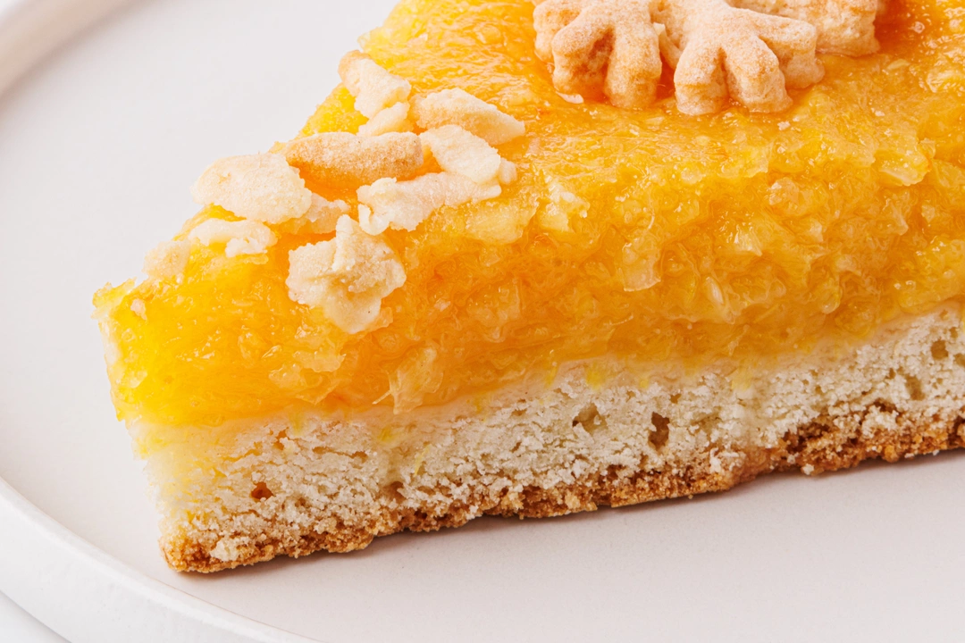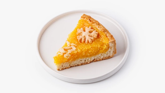 Классический пирог из песочного теста с яркой праздничной начинкой. Ароматные мандарины, сочные апельсины и кислинка лимона придают выпечке выраженный цитрусовый оттенок. Продукт заморожен и может долгое время храниться в морозильной камере.