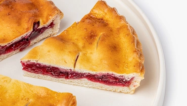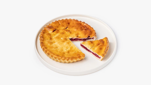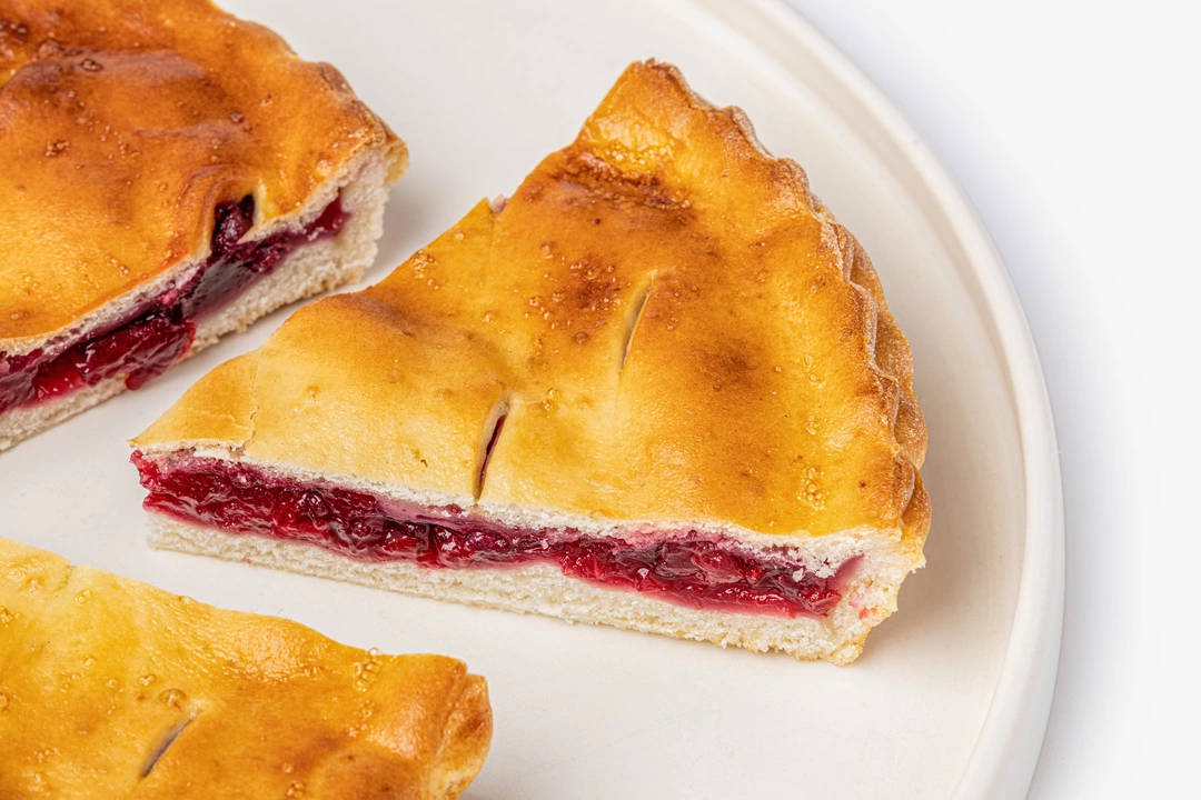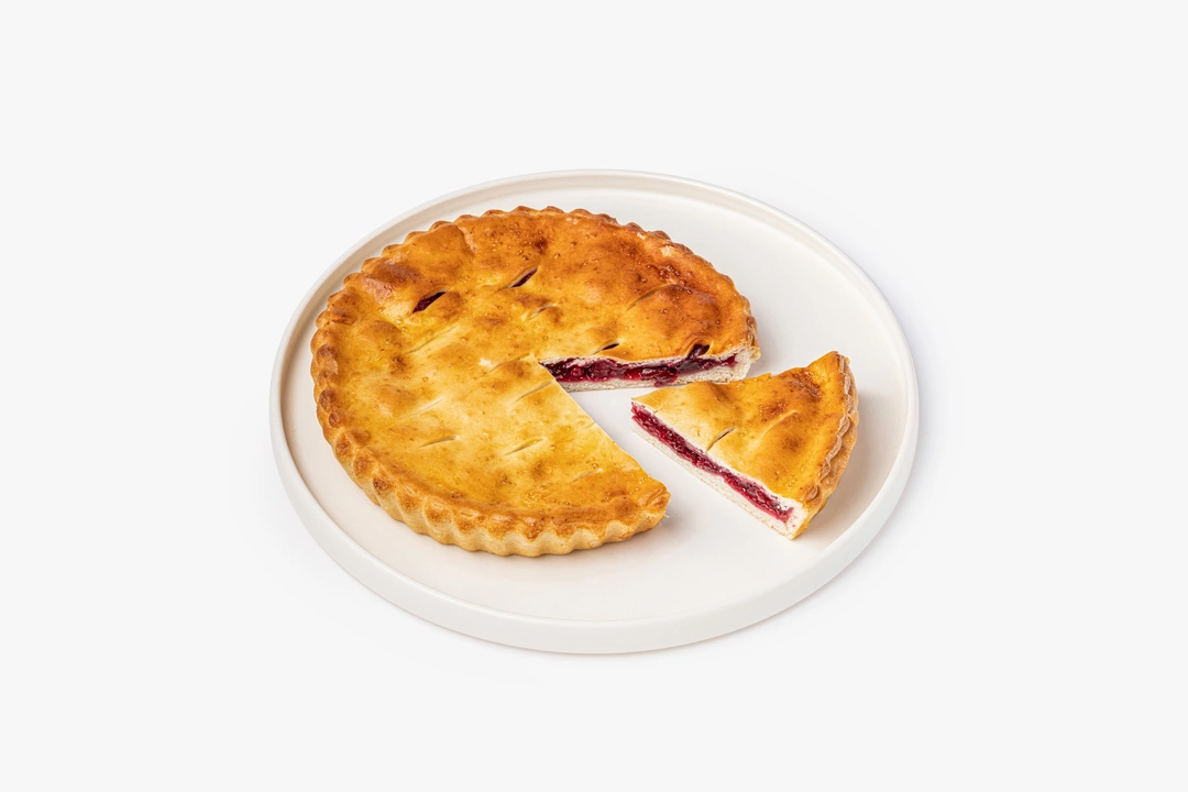 Пирог с начинкой из вишни. Дрожжевое тесто на молоке и сливочном масле, с мягкой текстурой.