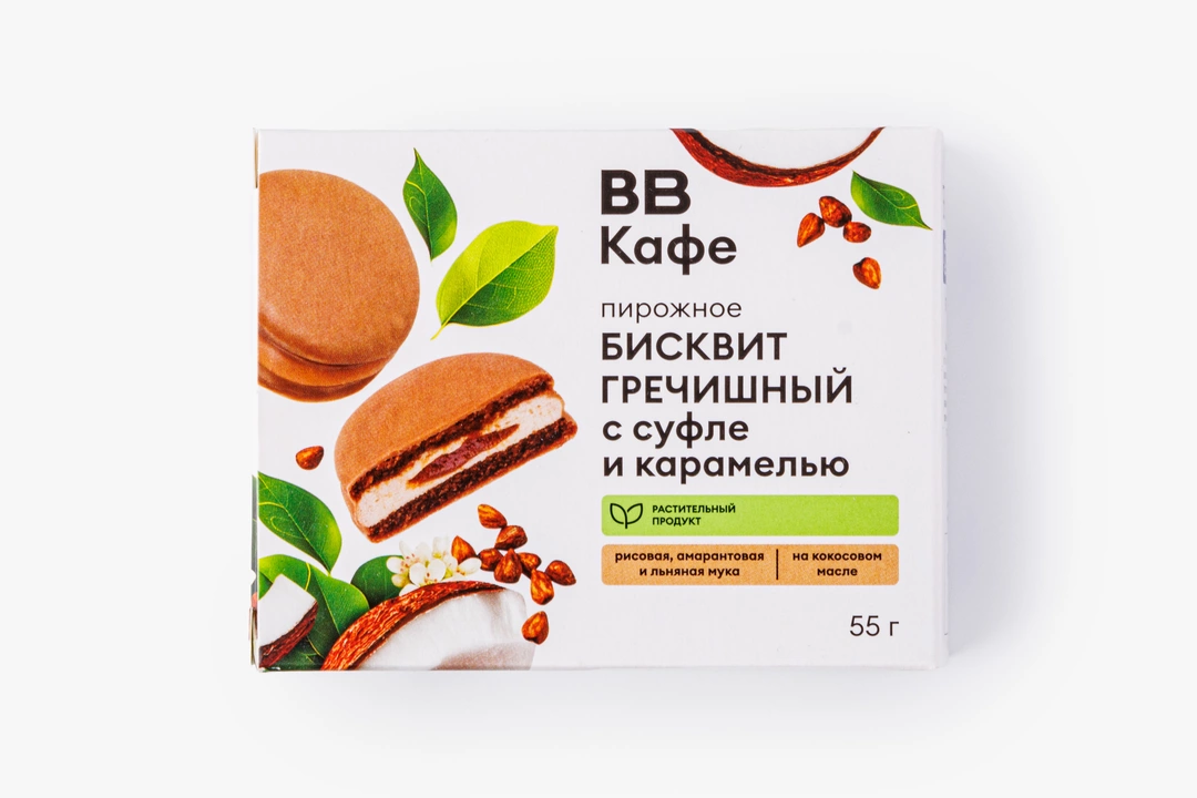 Пирожное "Бисквит гречишный с суфле и карамелью", кафе