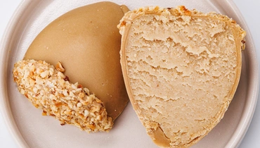Традиционное пирожное картошка в форме жёлудя. Глазурь из гречишного шоколада добавляет ему лёгкий карамельный акцент. Сверху десерт украшен шляпкой с дроблёным фундуком. Патока и кунжутная халва придают лакомству особенную сладость и ореховый оттенок.