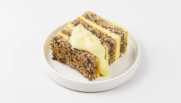 Нежные бисквитные коржи с щедрым количеством мака сочетаются с воздушным лимонным кремом. Он приготовлен на основе натурального лимонного пюре и даёт лёгкую освежающую кислинку без химического привкуса, а сливочные нотки смягчают вкус. Добавили в бисквит грецкий орех, хотя его нотки во вкусе не доминируют. Пирожное получается влажным, но не мокрым, с идеальным балансом сладости и кислинки. Отдельно положили к нему дополнительную порцию крема для большего удовольствия.