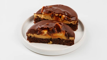 Десерт с орехово-шоколадным вкусом и карамельной сладостью. Внутри пирожного шоколадный бисквит с ванильным акцентом и слой сырно-карамельного крема с ореховым оттенком. Сверху оно украшено ядрами арахиса и грецкого ореха и покрыто шоколадной глазурью.