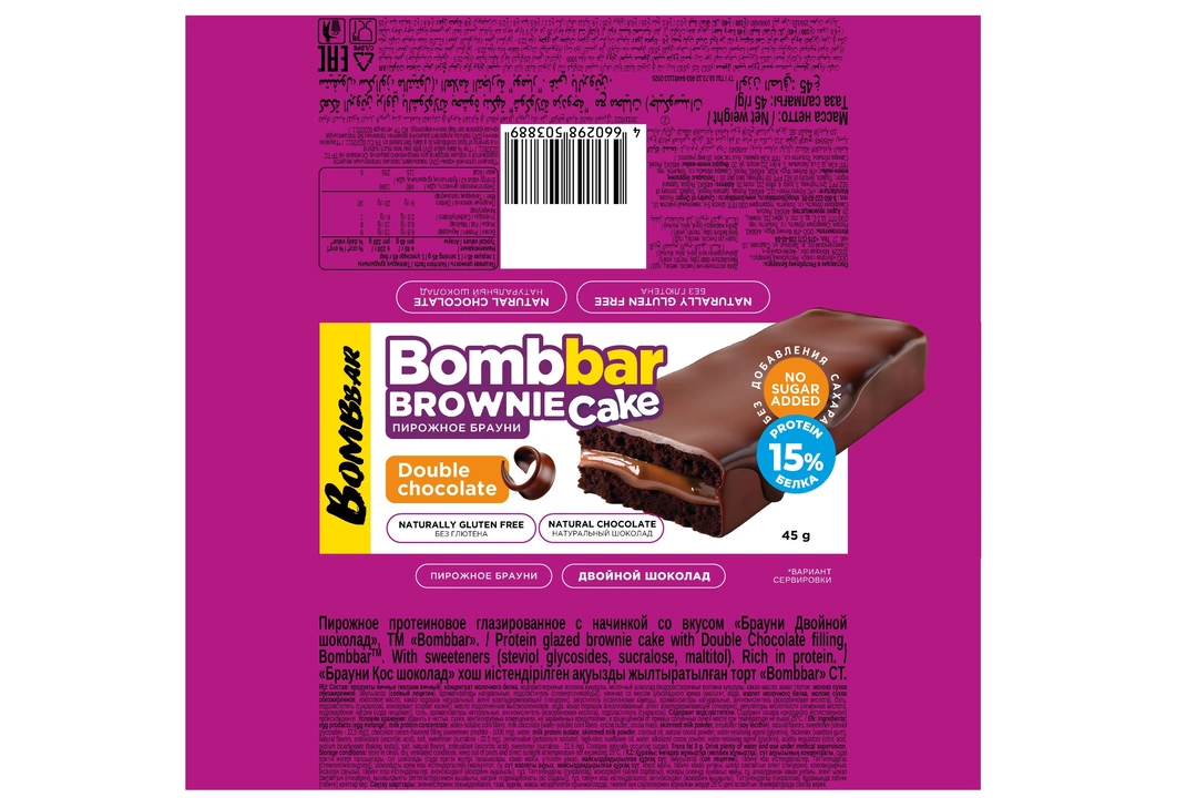 Пирожное протеиновое Bombbar глазированное со вкусом Брауни двойной шоколад 45 г / Супермаркет