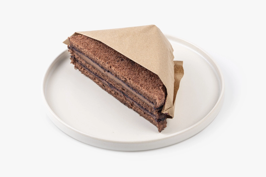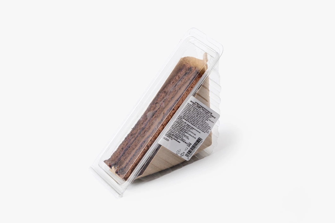 Пирожное с шоколадными коржами и ягодным кремом. Воздушный бисквит пропитан сливочно-шоколадным кремом с добавлением черники.