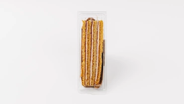 Пирожное в форме сэндвича из мягких коржей с прослойкой творожного крема и ягодного пюре. Малина и клубника придают десерту деликатную кислинку, а патока и сахар добавляют умеренную сладость. Вкус получается сбалансированным и гармоничным, без приторности. Пирожное достаточно сытное, поэтому может стать вариантом готового завтрака или полдника и хорошо дополнит утреннее чаепитие или кофейную паузу.