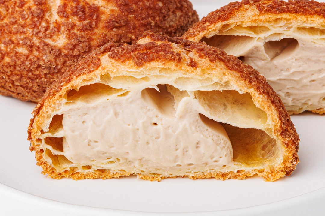 Классический французский десерт из воздушного теста с характерной корочкой-кракелюром. Внутри начинка из нежного сливочно-кофейного крема с добавлением жареного молотого кофе. Пирожные получаются лёгкими и нежными, с умеренной сладостью.
