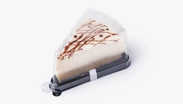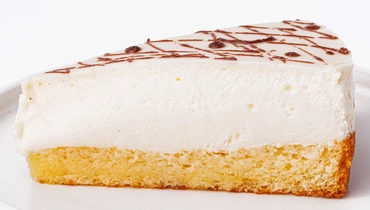Нежное пирожное на основе воздушного бисквита и лёгкого сливочно-сметанного мусса. Украшено рисунком из глазури с тонкими полосками из тёмного и молочного шоколада.