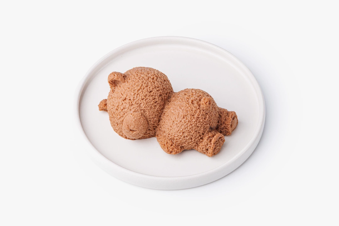 Нежное муссовое пирожное с шоколадным вкусом и ореховой начинкой выполнено в форме спящего медвежонка. Воздушное лакомство буквально тает во рту, оставляя лёгкое сливочное послевкусие с нотами какао. Его можно преподнести в качестве сладкого комплимента или сделать милый подарок ребёнку, который обязательно оценит необычный внешний вид десерта.