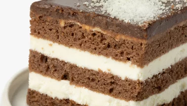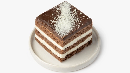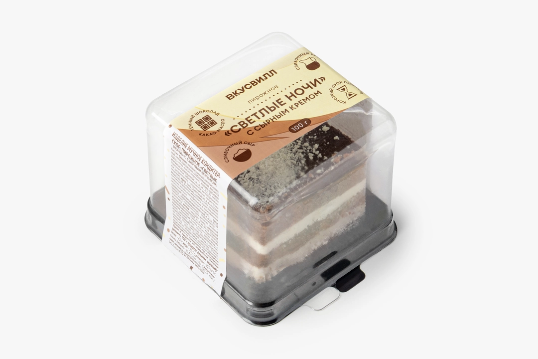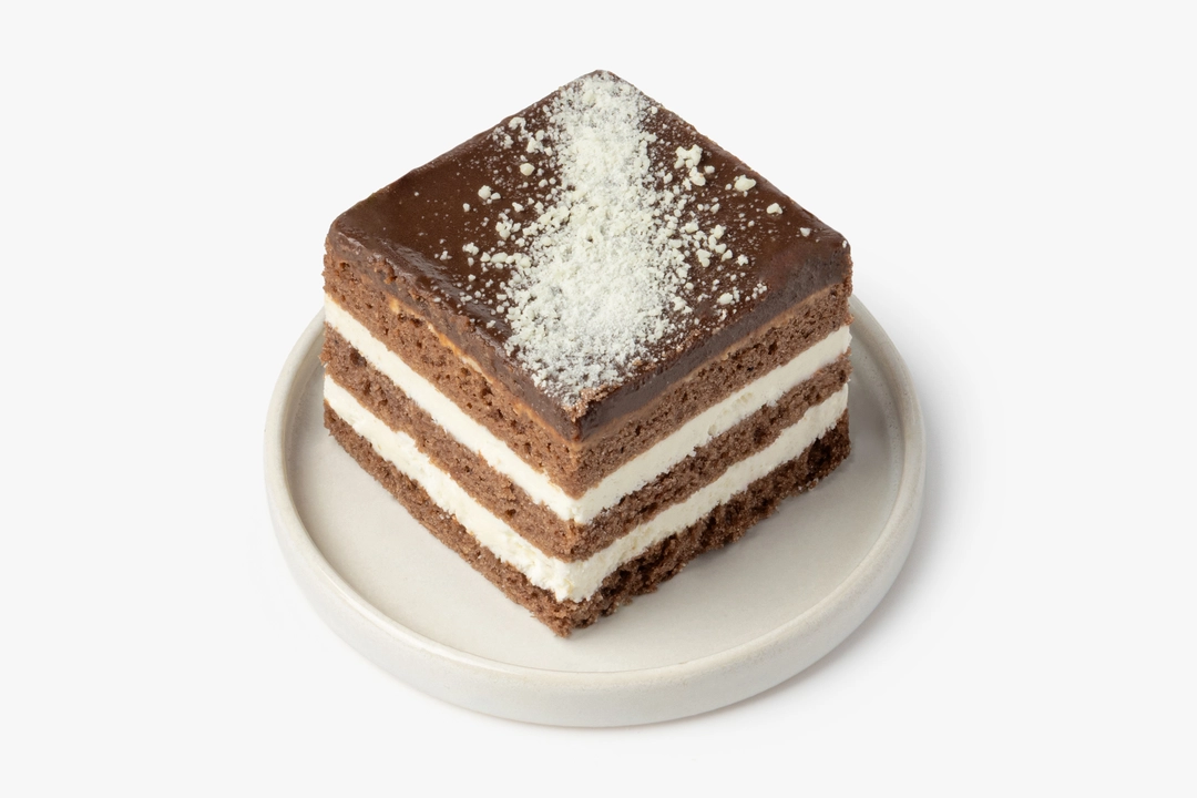 Пирожное с шоколадным бисквитом и кремом на основе сливочного сыра.