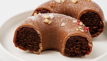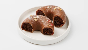 Супершоколадное веганское пирожное-донат с нежным бисквитом, испечённым из цельнозерновой муки. Чтобы добавить контраста выразительному вкусу, дополнили десерт кисленькой вишнёвой прослойкой. А завершающим аккордом стал кофейный: он усиливает шоколадное звучание лакомства и придаёт ему едва уловимую благородную горчинку.
