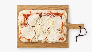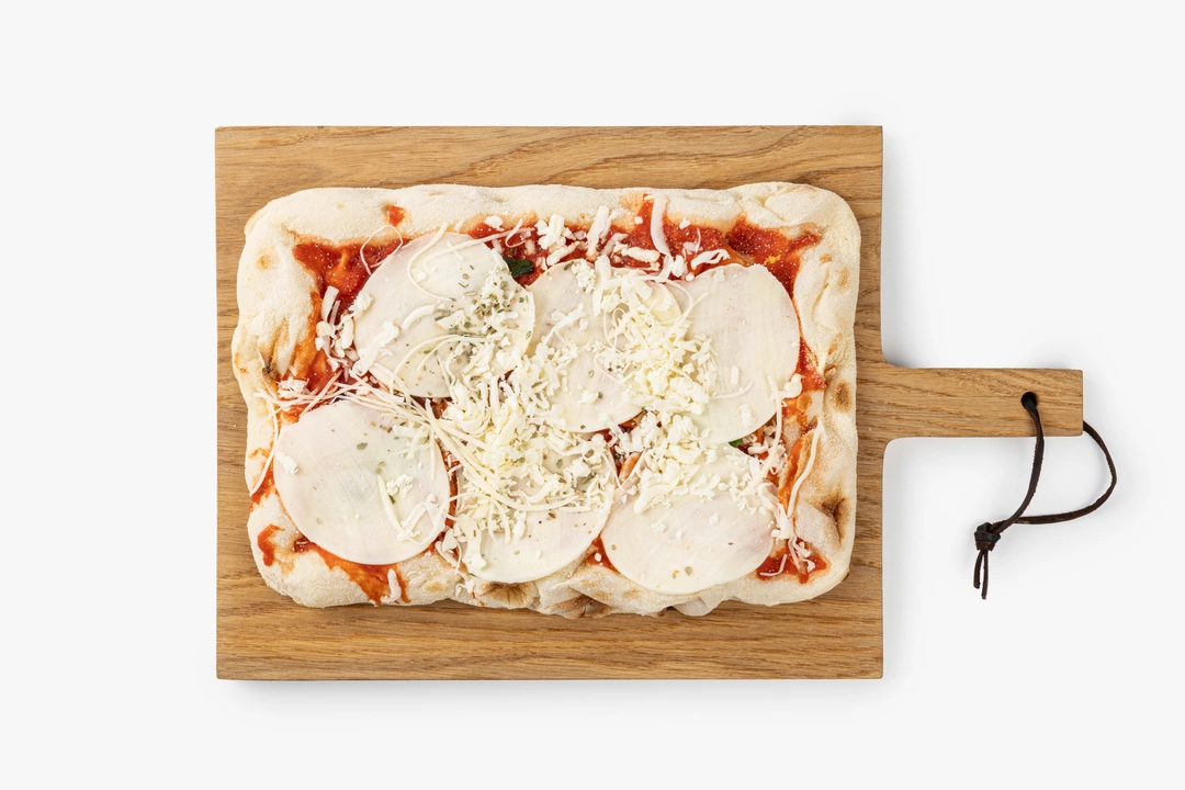 Классическая пицца с минималистичной начинкой — это пышное воздушное тесто на закваске и простое, но безупречное сочетание томатного соуса и сыра моцарелла. Вкус получается мягким и сбалансированным: сливочная тянущаяся начинка сочетается с ароматом базилика и орегано. Пицца уже выпечена в каменной печи, поэтому дома достаточно разогреть её в духовке в течение 8–13 минут, чтобы сыр снова стал тягучим, а края приятно хрустели. В составе только натуральные ингредиенты, без усилителей вкуса и искусственных ароматизаторов.