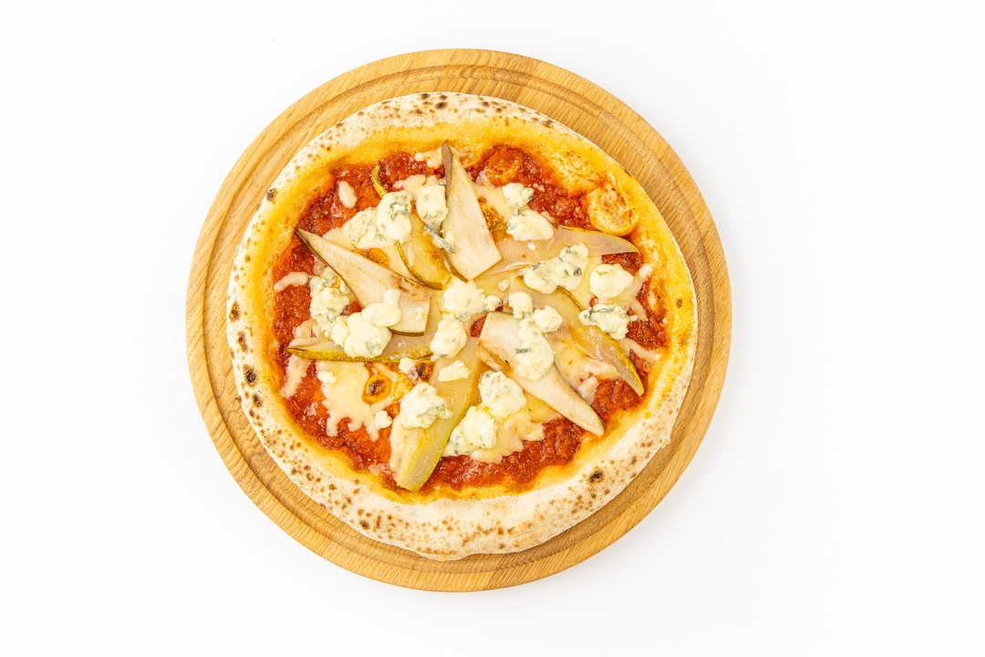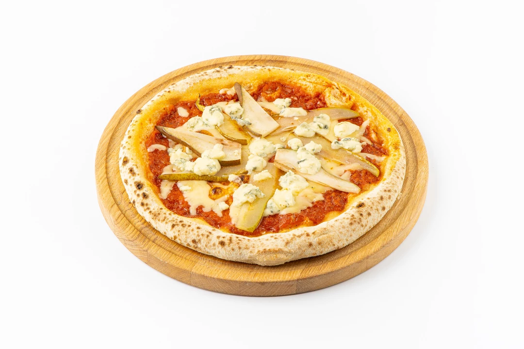 Необычная пицца с деликатным сочетанием сладкой груши и сыра с голубой плесенью. Мягкая пшеничная основа на оливковом масле подчёркивает изысканность начинки. Фруктовые дольки при запекании приобретают тонкую карамельную ноту, а пикантный сыр с плесенью создаёт изящный контраст со сладостью груши. Сверху пицца присыпана тёртым сыром, который плавится при разогреве и становится нежным и тягучим. Изысканный вариант привычного блюда создан для настоящих гурманов. Продукт приедет к вам горячим и готовым к подаче.