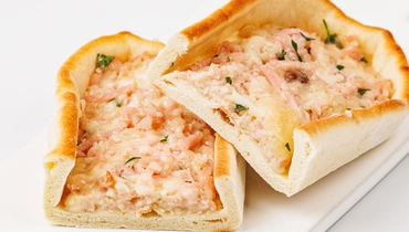 Небольшая пицца с тянущимся сыром, ветчиной и тонкими ломтиками бекона — сытный перекус с традиционным сочетанием компонентов. Основа получается мягкой, с лёгкой корочкой, а расплавленный сыр придаёт начинке сливочность. Хороша в качестве быстрого обеда или закуски — удобно разогреть и съесть без столовых приборов.