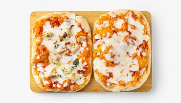 Две изысканные и удобные мини-пиццы с различными вкусами. Каждая пицца имеет пышную основу и хрустящую корочку, образующуюся при выпекании. В «Маргарите» томатный соус с оливковым маслом идеально сочетается с мягкой моцареллой, создавая классический вкус. Пицца «Курица с соусом песто» радует насыщенным вкусом куриного филе, запечённого с горчицей и чёрным перцем, а соус песто с базиликом и пармезаном придаёт ей особую пикантность. В составе нет соевого белка, усилителей вкуса или искусственных ароматизаторов — используем только натуральные ингредиенты. Хороший выбор для лёгкого ужина или перекуса с друзьями.