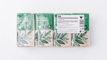 Мягкие бежевые платочки из бамбуковой целлюлозы для ежедневного использования. Трёхслойная структура делает их более прочными. У платочков комфортный размер: 200 × 200 мм. В одной пачке 10 штук, а всего в наборе 8 аккуратных упаковок. Платочки выручат вас везде: и дома, и во время прогулок или поездок. Компактный формат позволяет носить их в сумке, рюкзаке или держать под рукой в бардачке автомобиля.