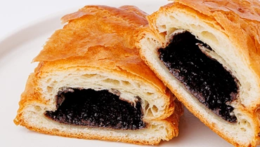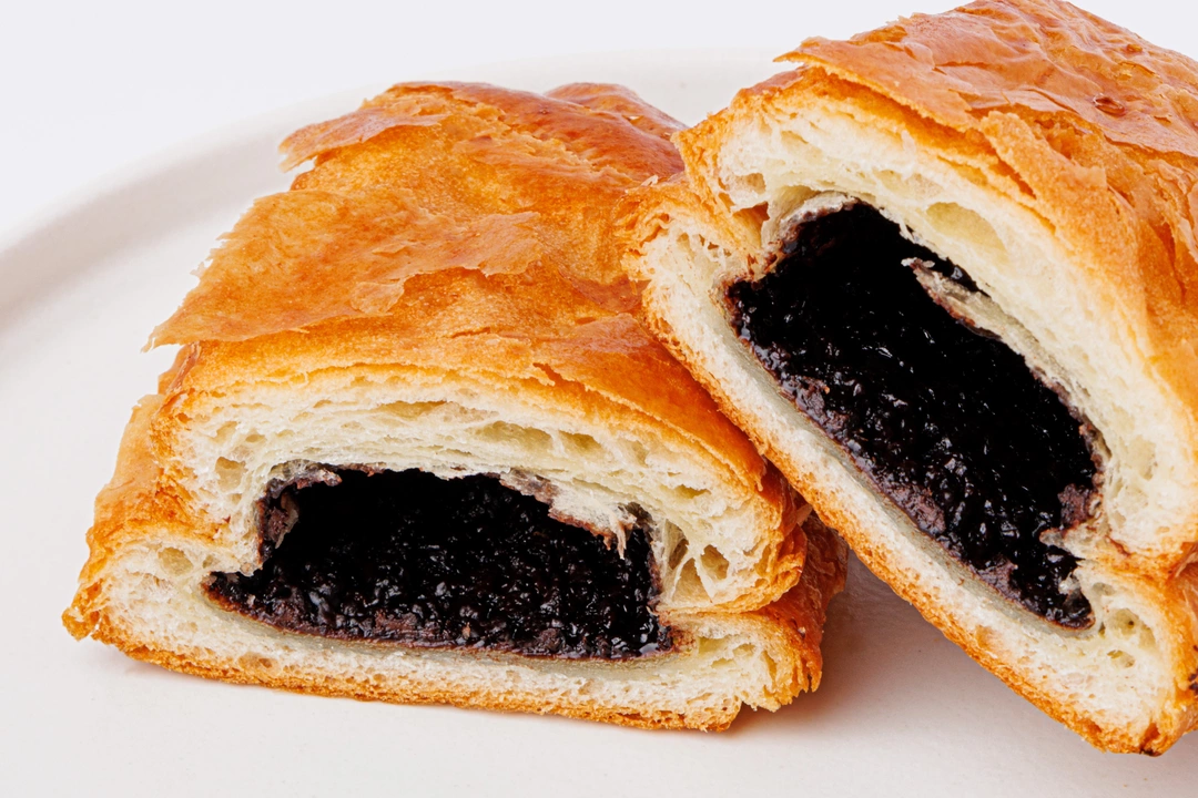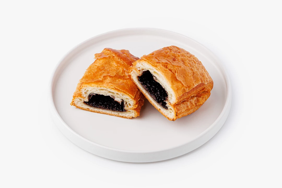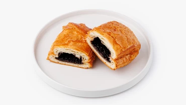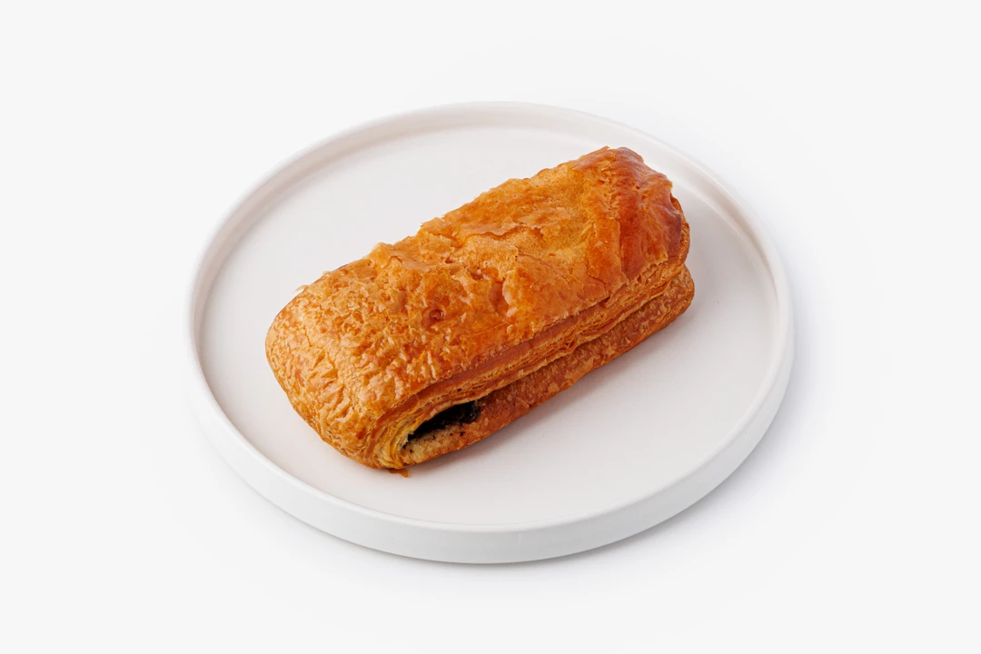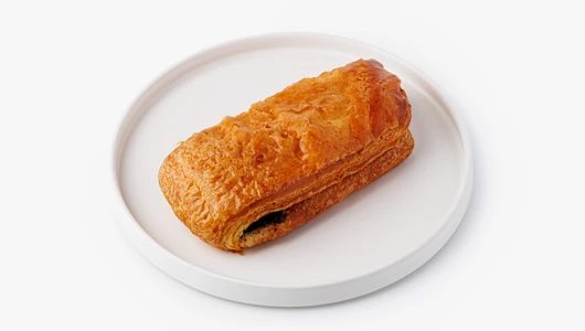 Слойка из слоёного дрожжевого теста. Шоколадная начинка с ядрами обжаренного фундука и тростниковым сахаром придаёт ей мягкую сладость с ореховым оттенком.
